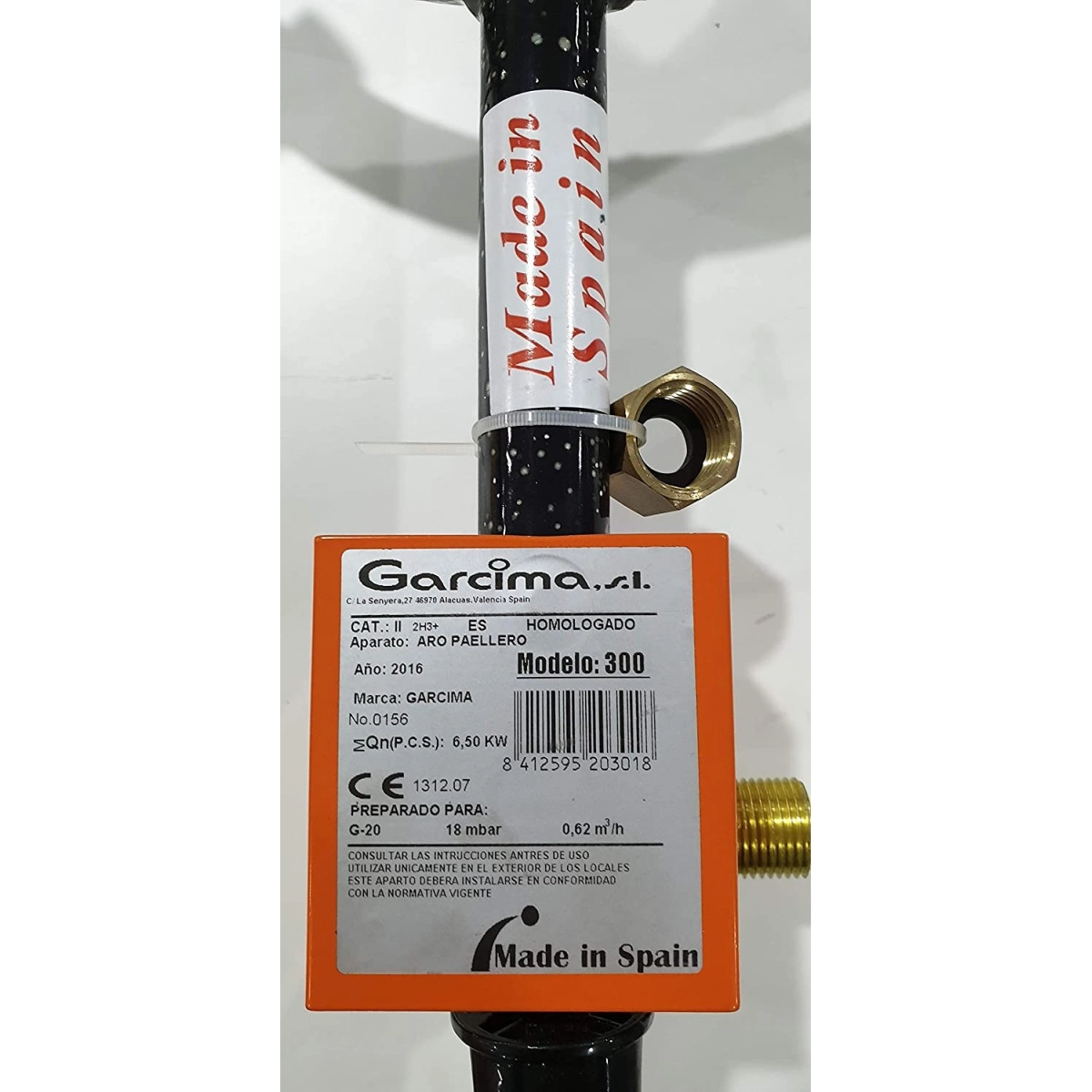Fabricado por Garcima, S.L., líder en accesorios de cocina tradicional valenciana, este modelo está preparado para su uso exclusivo con gas natural y cumple con las normativas europeas de seguridad.