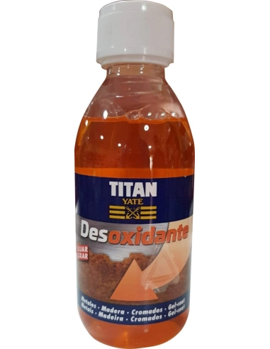 Desoxidante TITAN de 250 ml para eliminar óxido y prevenir la corrosión. Ideal para herramientas, piezas metálicas y pequeñas reparaciones.