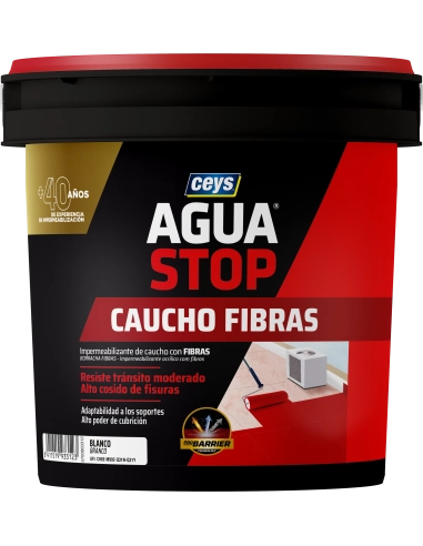 No, el Aguastop Caucho Fibras ya viene reforzado internamente con fibras. Estas fibras cumplen la función de sellar pequeñas fisuras y grietas de hasta 1-2 mm sin necesidad de malla externa. Solo se recomienda malla para juntas de dilatación o fisuras de gran tamaño.