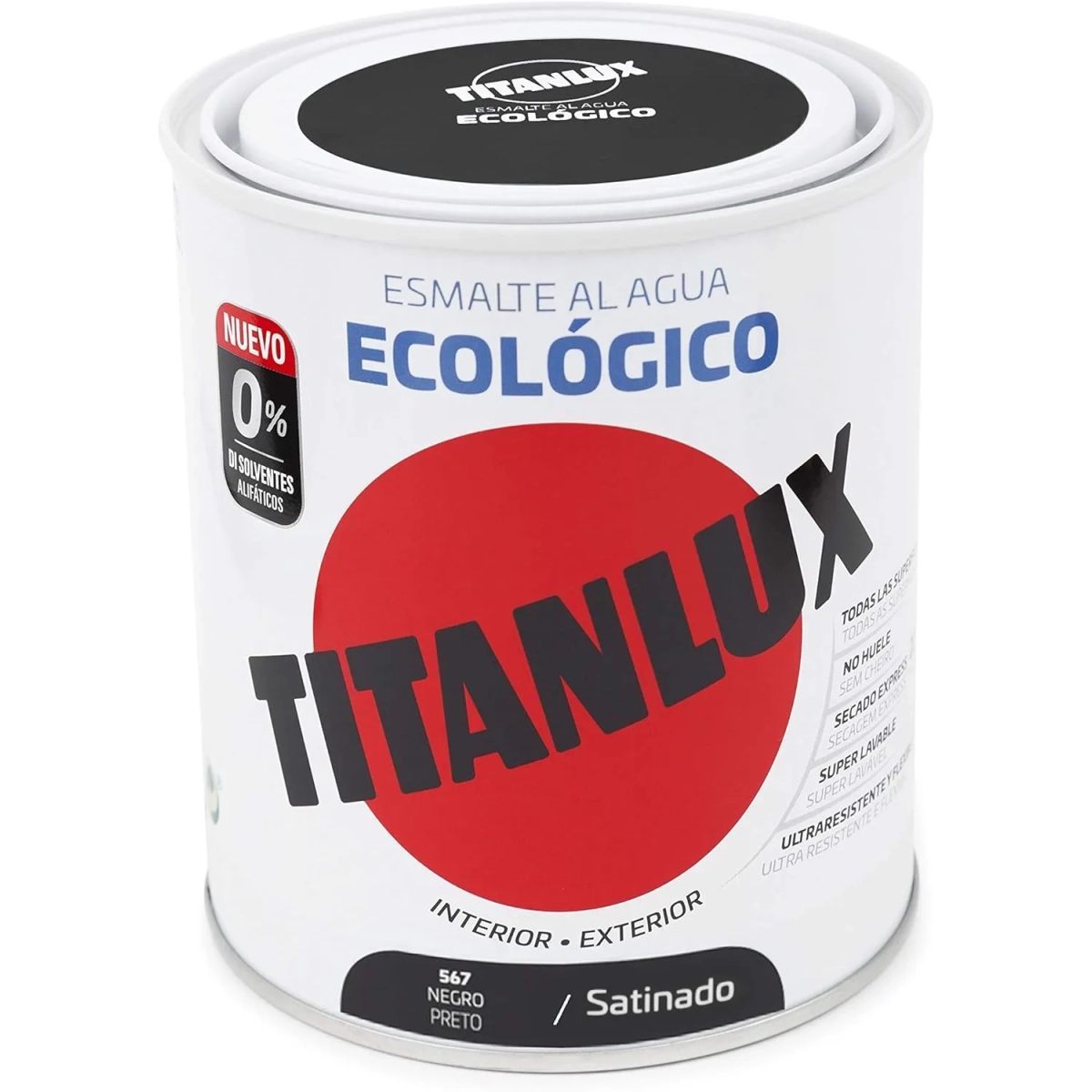 TITANLUX - Esmalte Ecológico Al Agua Negro Satinado - 250 ML