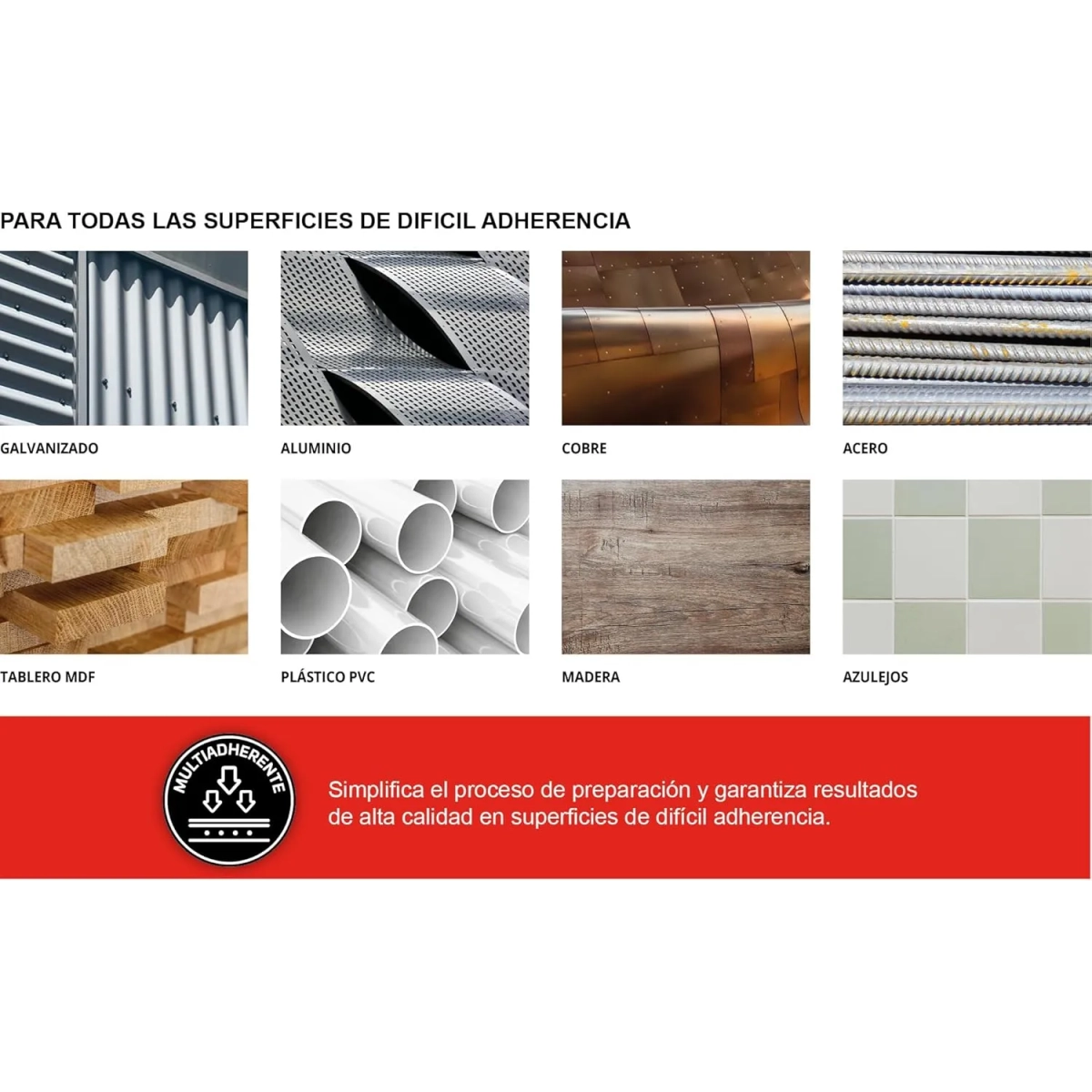 La imprimación multiuso TITANLUX al disolvente ofrece una excelente adherencia sobre madera, metal, yeso o plástico. Su fórmula blanca cubriente asegura un acabado uniforme y profesional, ideal para interiores y exteriores. Secado rápido y fácil aplicación.