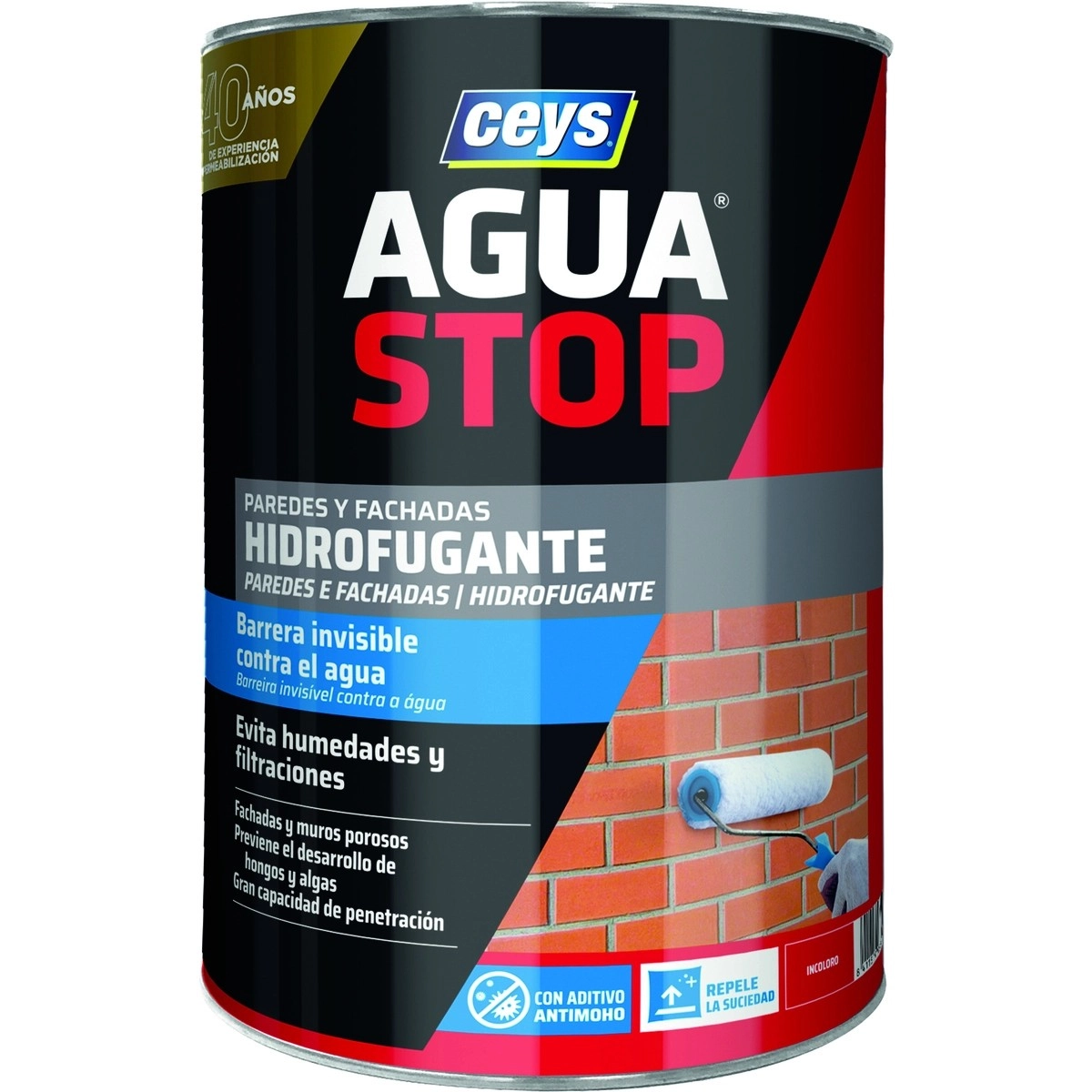 Ceys Aguastop es un hidrofugante de alta calidad con acción antimoho, diseñado para proteger tus superficies exteriores e interiores de la humedad, las filtraciones y la aparición de moho. Su fórmula avanzada repele el agua, evitando daños en tus fachadas, terrazas, baños y más.