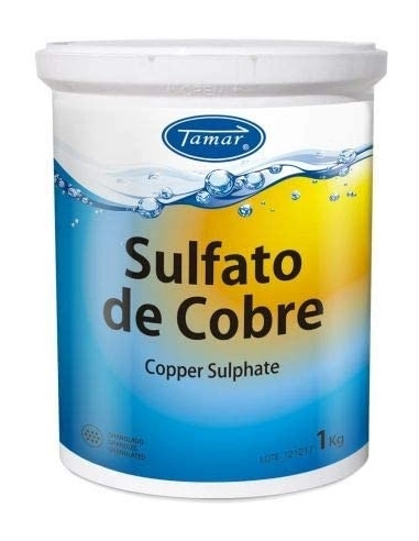 Sulfato de cobre en formato de 1 kg. Producto versátil para tratamientos agrícolas, limpieza de piscinas, control de hongos y usos industriales. Alta pureza y eficacia.