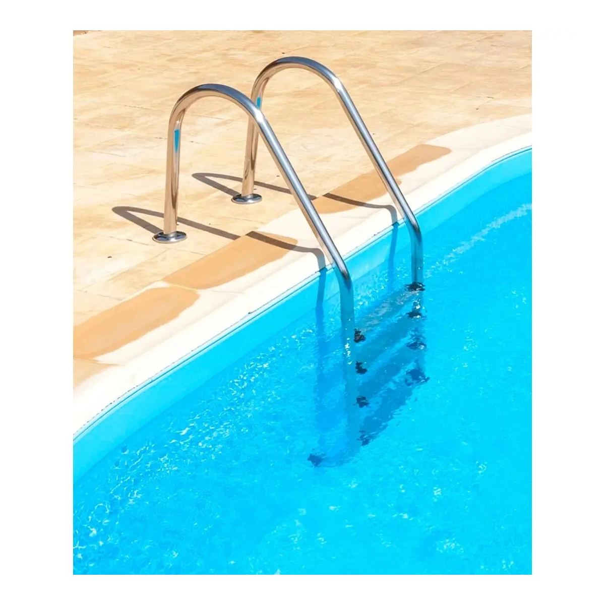 La escalera de piscina de 4 peldaños es la opción más equilibrada para piscinas con una profundidad media-alta. Su estructura de acero inoxidable pulido no solo aporta una estética limpia y moderna a su jardín, sino que garantiza una vida útil prolongada gracias a su tratamiento contra la oxidación.