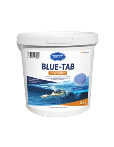 Tamar Cloro Blue Tab 10 Acciones es un producto multifunción en tabletas de 200 g que ofrece una solución completa para el mantenimiento del agua de tu piscina. Con 10 acciones en una sola tableta, este cloro desinfecta, elimina bacterias y algas, flocula, abrillanta, regula el pH, previene la cal, es bacteriostático, clarifica y estabiliza el agua. Ideal para mantener tu piscina limpia, cristalina y saludable durante todo el año.