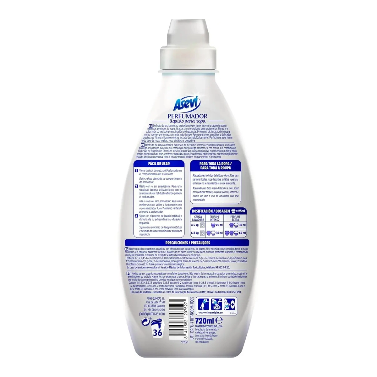 Protección de Fibras: Además de perfumar, ayuda a mantener la suavidad de las prendas, facilitando el planchado y protegiendo los colores.