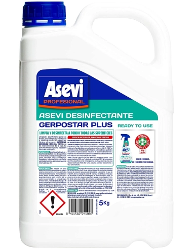 El Desinfectante Asevi Profesional (Gerpostar Plus) es la solución definitiva para quienes buscan una desinfección de espectro completo con la máxima seguridad. Al no contener lejía, es respetuoso con los materiales y las personas, dejando además un perfume fresco que potencia la sensación de limpieza.