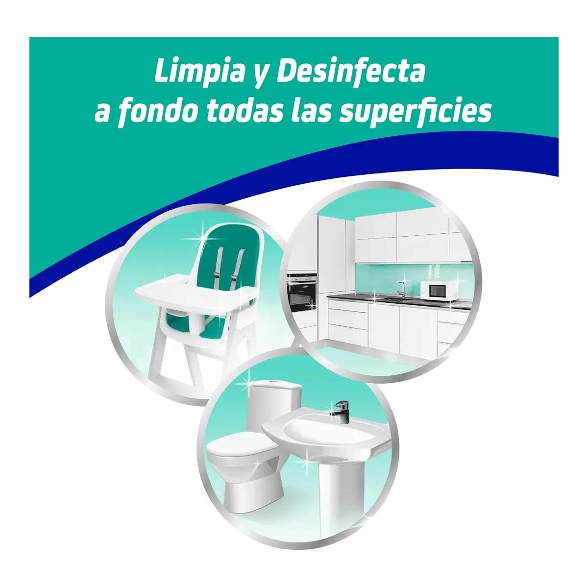 Limpiador desinfectante multiusos concentrado diseñado para una higiene profunda de todas las superficies del hogar y entornos profesionales. Su fórmula sin lejía elimina eficazmente bacterias, hongos y virus, garantizando un ambiente seguro sin desprender vapores ni manchar la ropa.