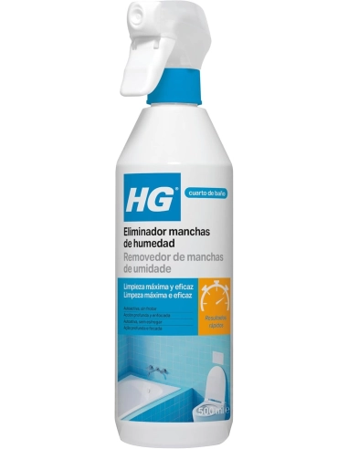 El HG Limpiador de Moho en formato 0,5 L es la solución ideal para eliminar manchas de moho, hongos, algas y musgo en superficies expuestas a la humedad. Es eficaz en azulejos, juntas, duchas, sanitarios, sótanos, garajes, piscinas, saunas y cobertizos, además de exteriores como balcones, fachadas y ornamentos de jardín. Su fórmula actúa rápidamente, dejando las superficies limpias y sin residuos.
