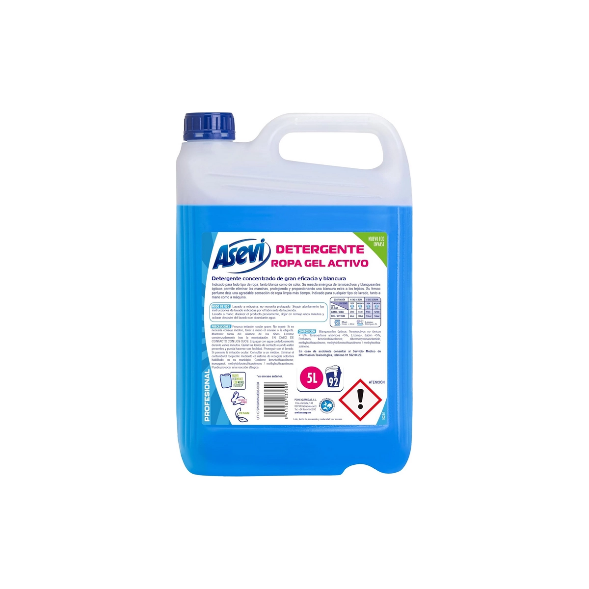 Asevi - Detergente Liquído Gel Activo 92 Lavados