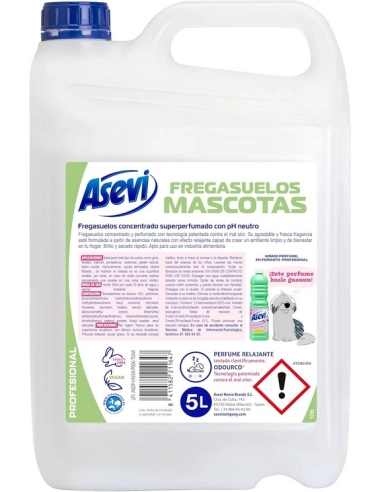 Fregasuelos Asevi Mascotas Concentrado 5L – Eliminador de Olores con pH Neutro