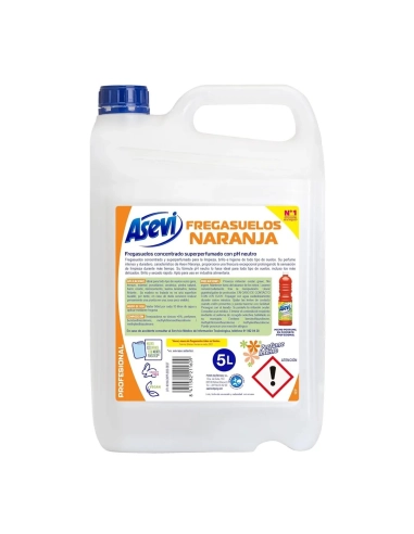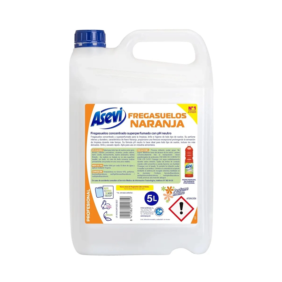 Fregasuelos Asevi Naranja 5L – Limpiador Concentrado pH Neutro para 250 Usos