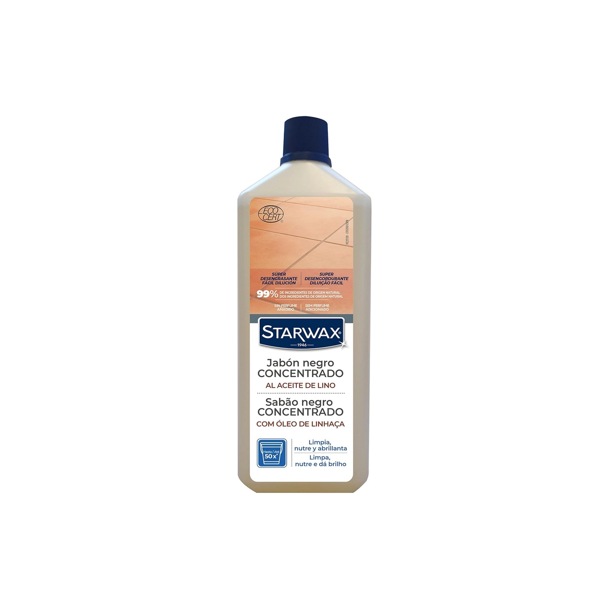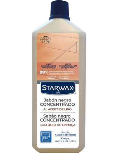 Jabón negro concentrado STARWAX con aceite de lino, limpiador multiusos natural ideal para suelos, superficies y limpieza general del hogar.