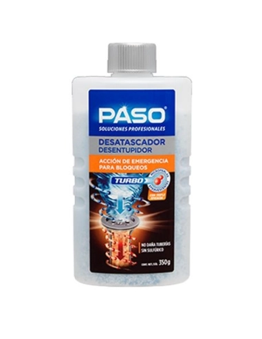 Ceys paso desatascador turbo es un desatascador de alto rendimiento diseñado para eliminar atascos de tuberías y desagües de forma rápida y eficaz. Su fórmula innovadora con microperlas efervescentes de triple acción (alta efervescencia, velocidad y eficacia) actúa rápidamente para desatascar las tuberías.