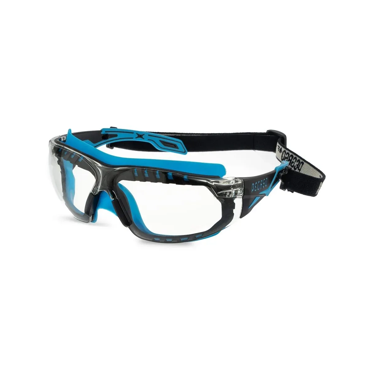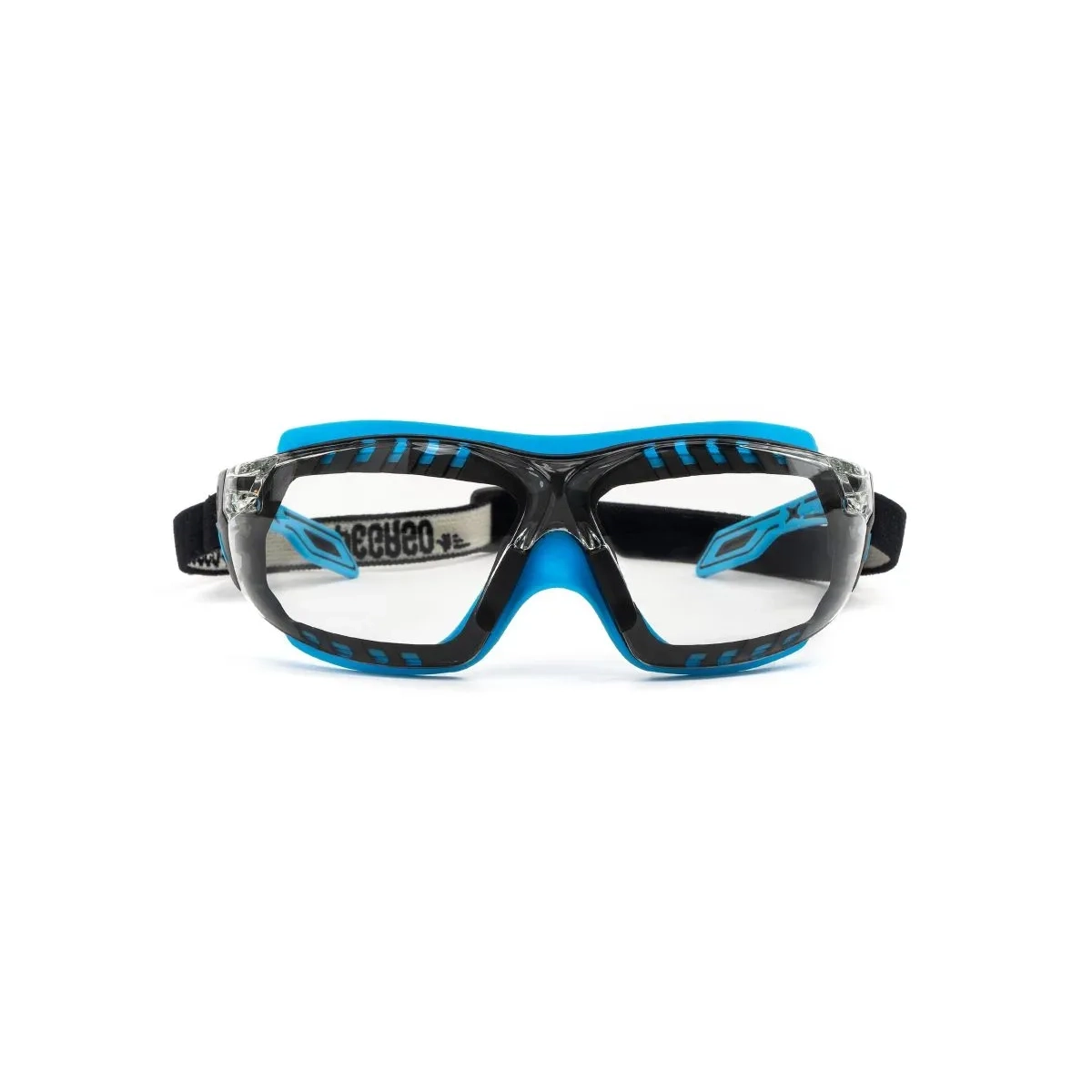 Gafa de seguridad incolora con diseño ergonómico y protección integral.