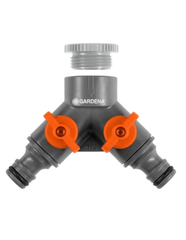 Compatible con grifos de 33,3 mm (G 1"), permite conectar simultáneamente dos mangueras o accesorios de riego.