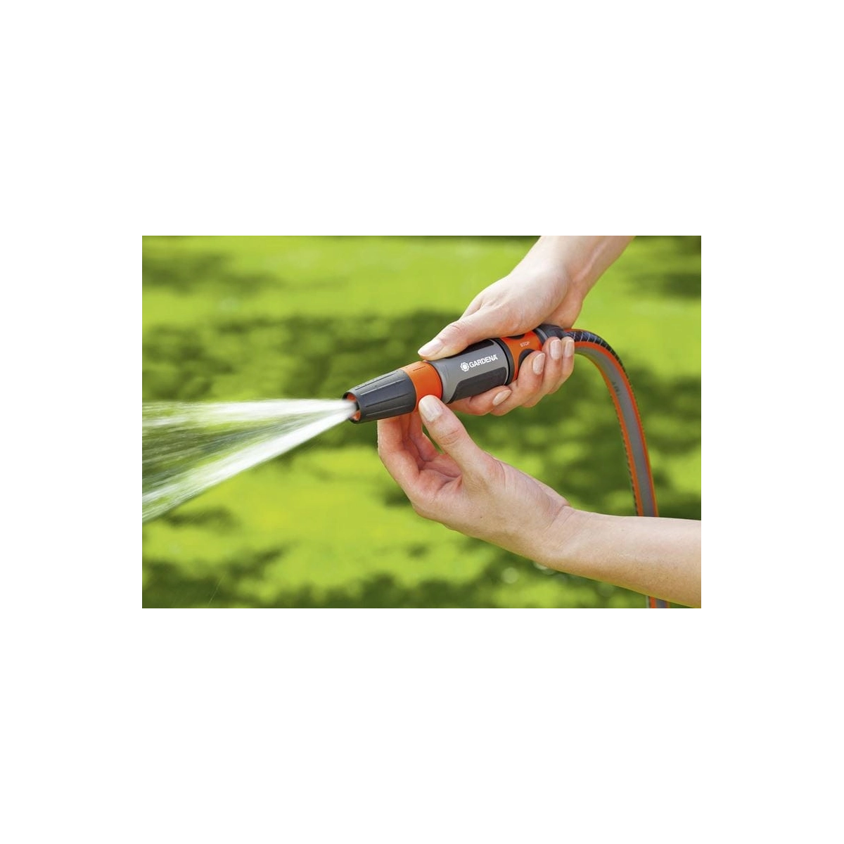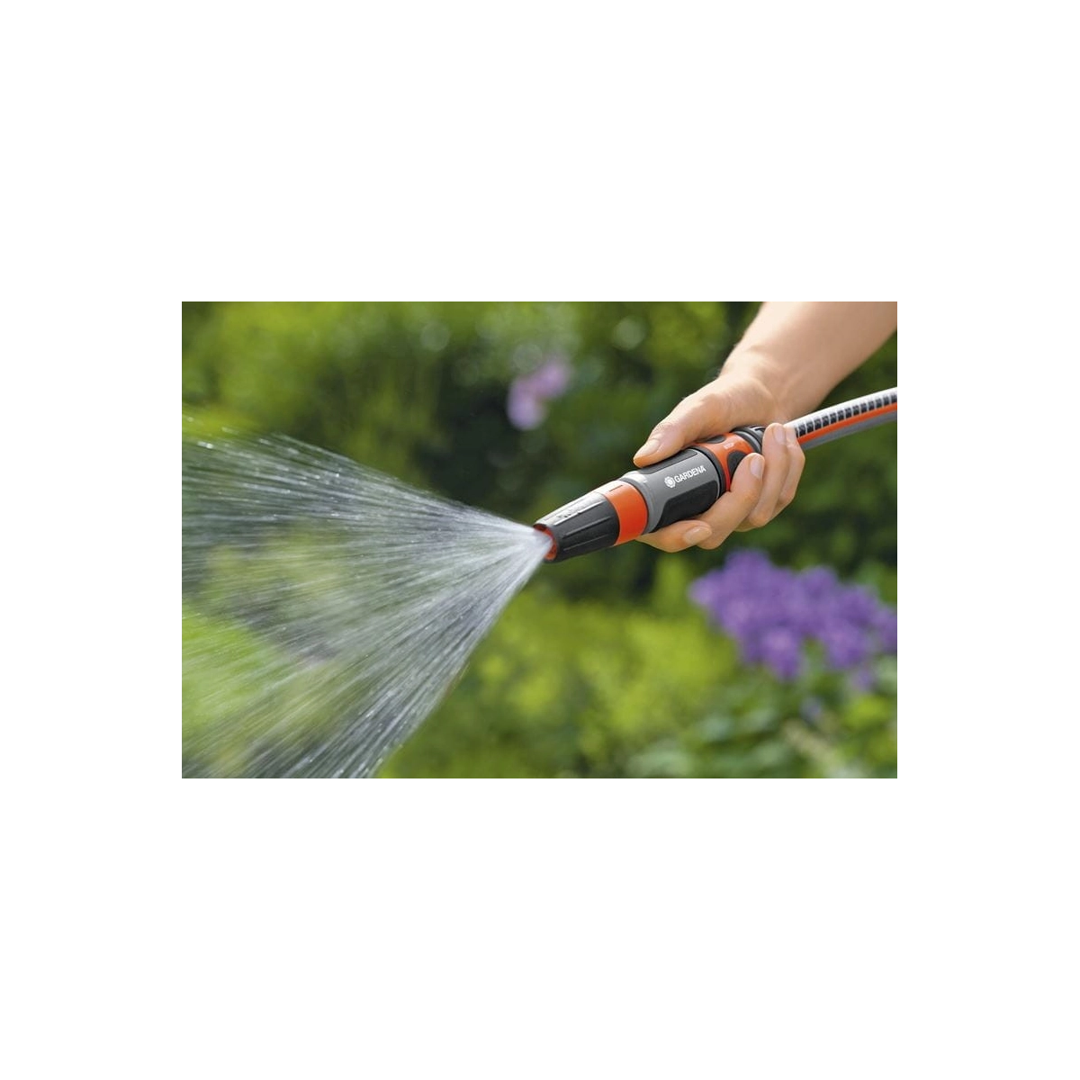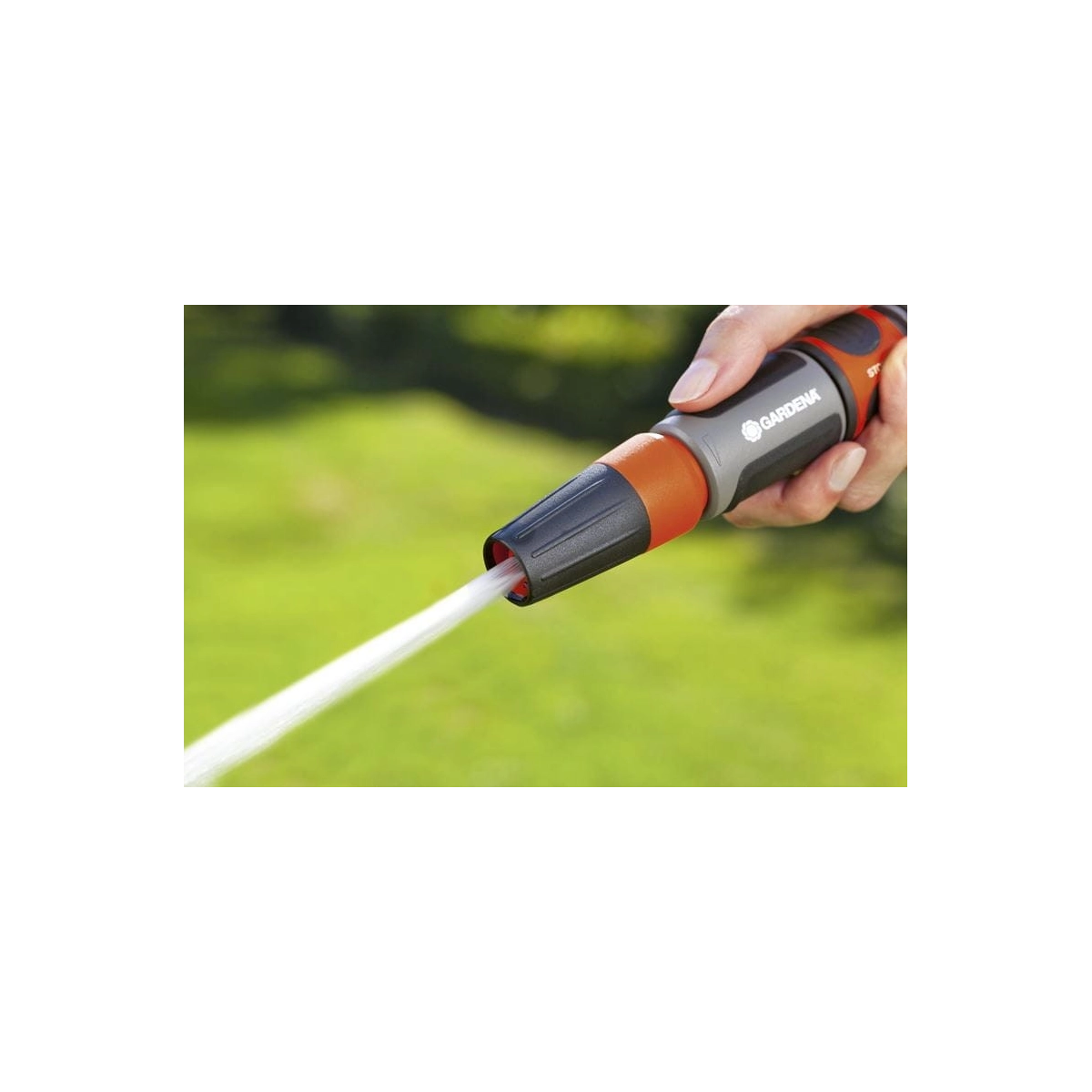 La lanza multichorro GARDENA 18300-20 ofrece un chorro regulable, desde pulverización suave hasta chorro concentrado, ideal para riego y limpieza.