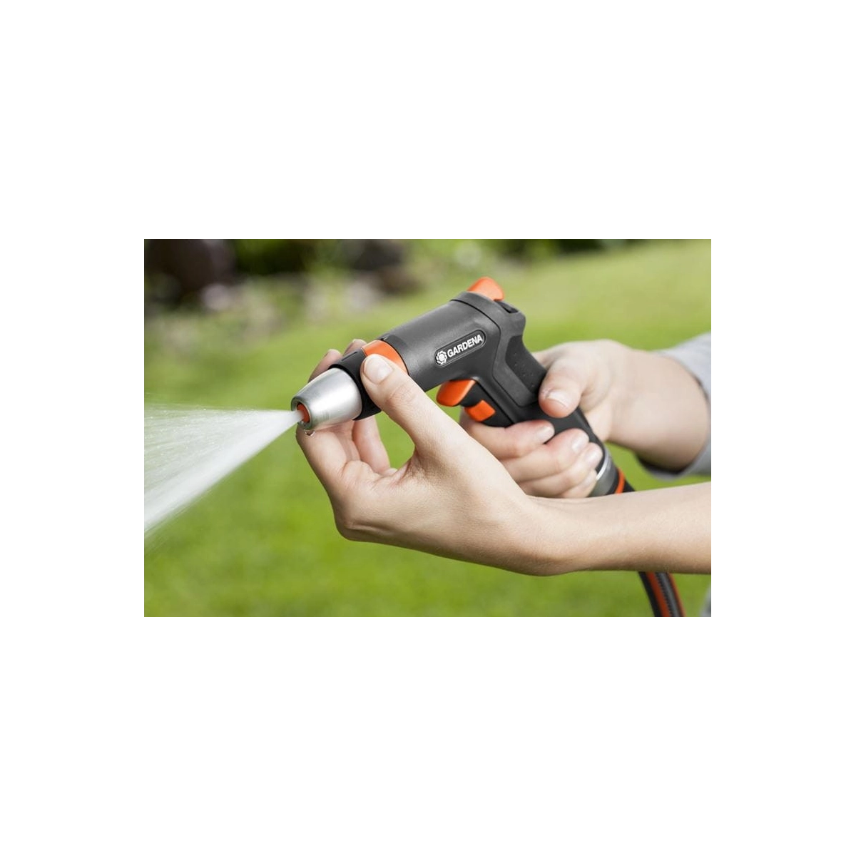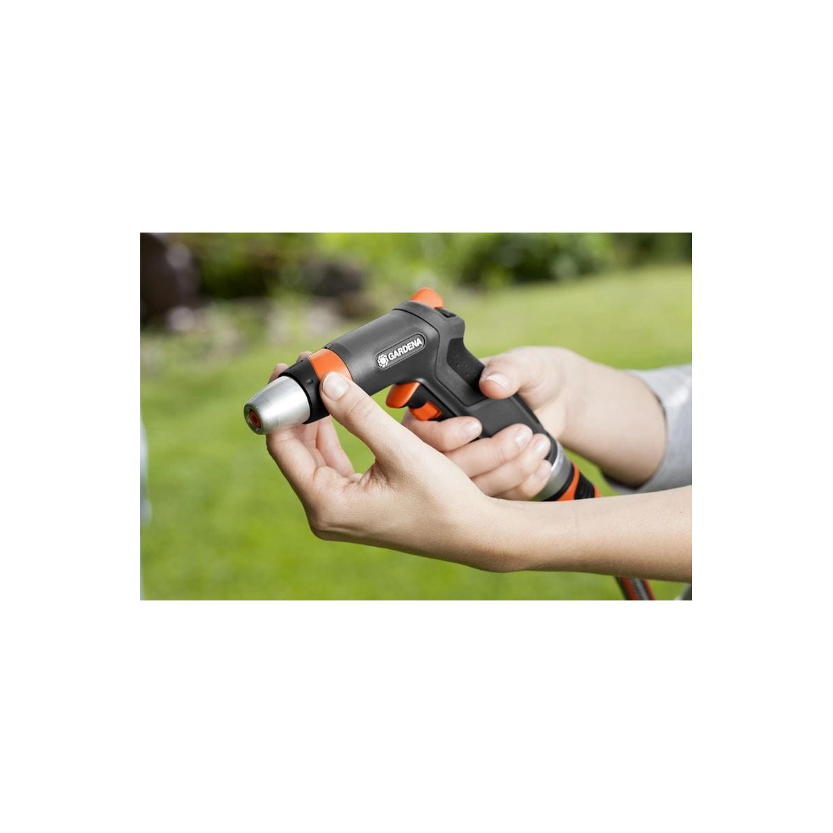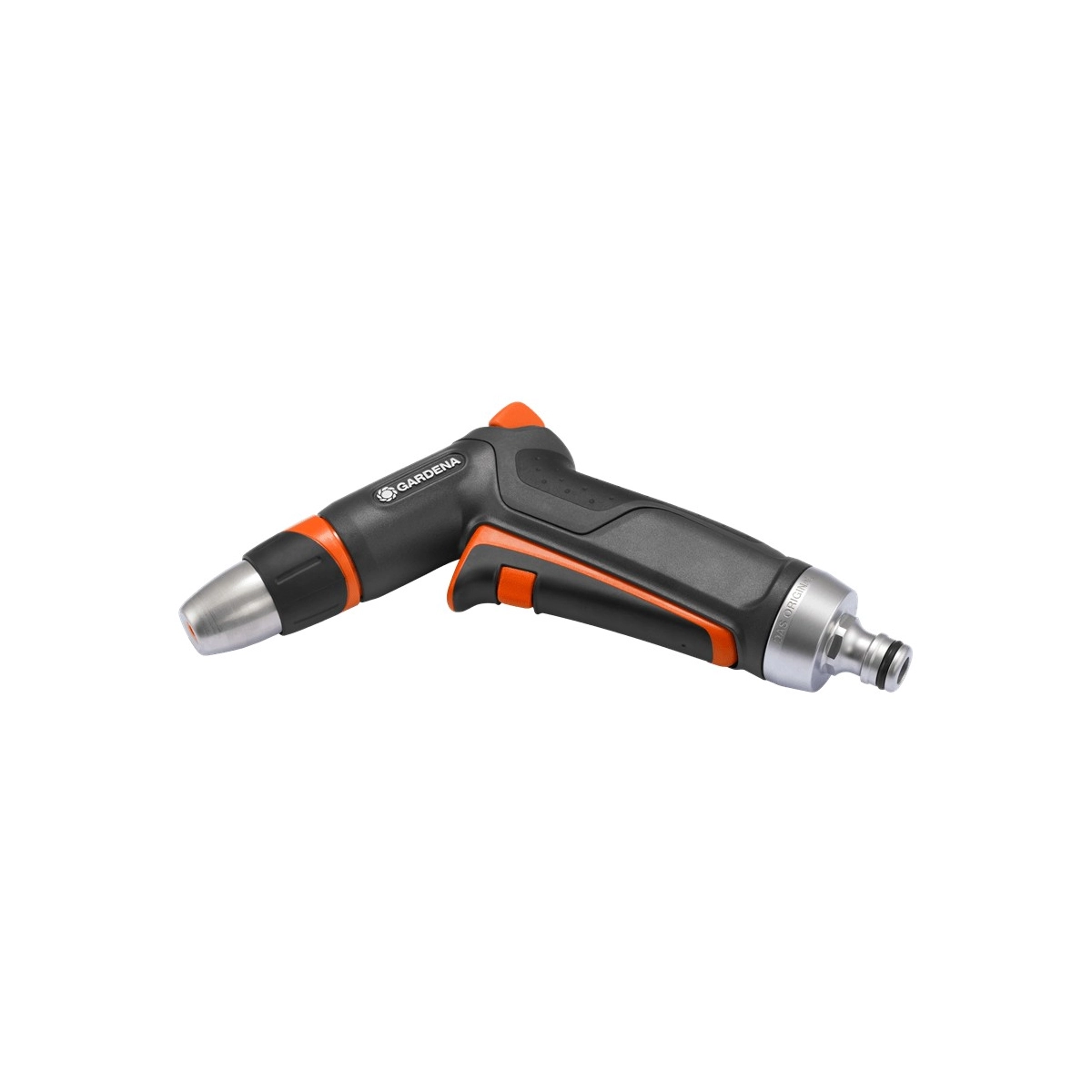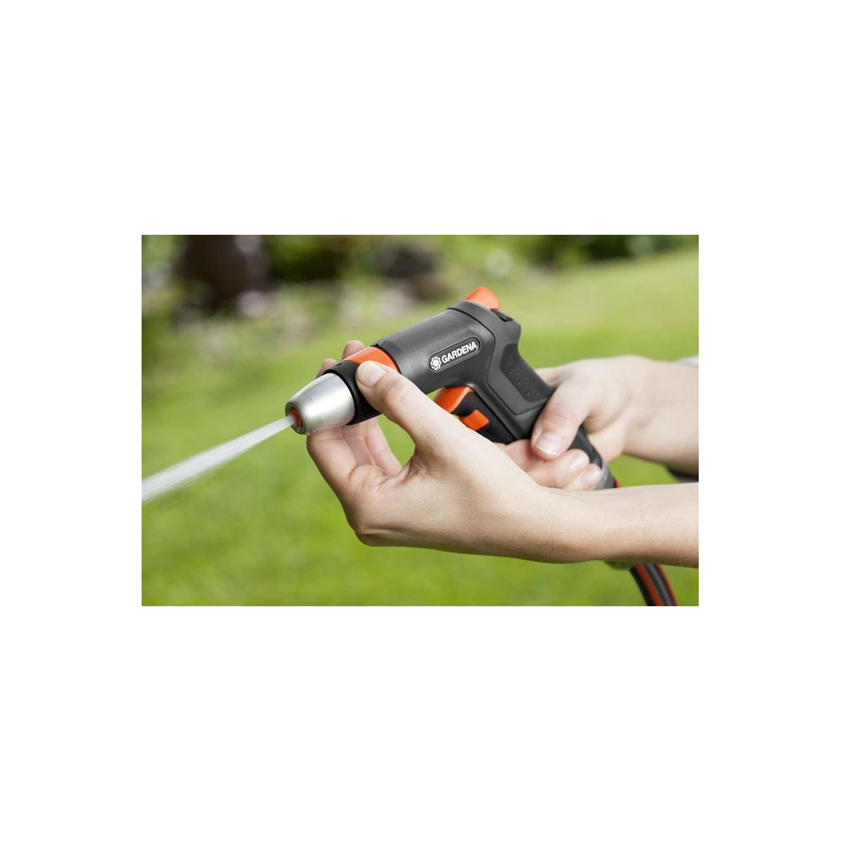 La pistola de limpieza GARDENA Premium 18308-20 ofrece chorro regulable, caudal ajustable y un diseño metálico resistente y ergonómico.