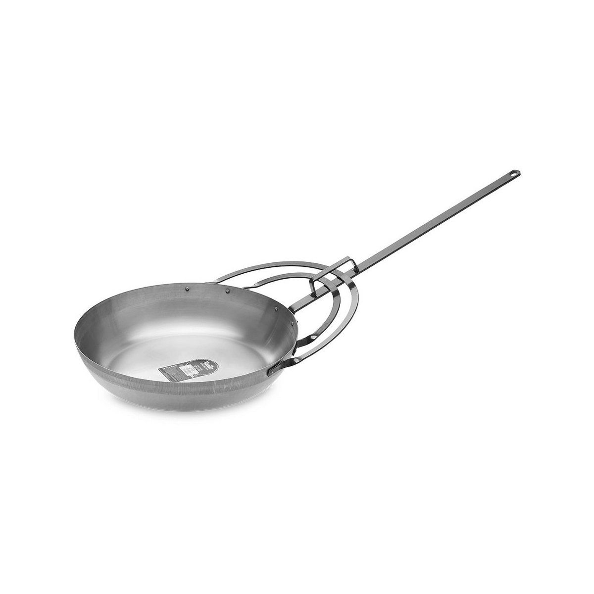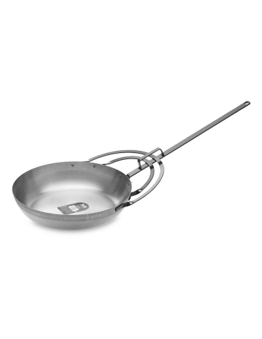 La sartén miguera Vaello es una pieza esencial de 40 cm de diámetro fabricada en acero pulido de alta resistencia. Su forma profunda y su característico mango largo con soporte de refuerzo la hacen ideal para cocinar a fuego abierto o en grandes quemadores, garantizando seguridad y un sabor auténtico en cada receta.