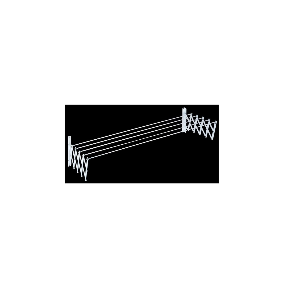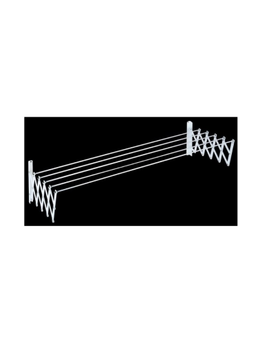 Tendedero metálico extensible de 150 cm, lacado en blanco, diseñado para exteriores. Ideal para ahorrar espacio y secar ropa cómodamente.
