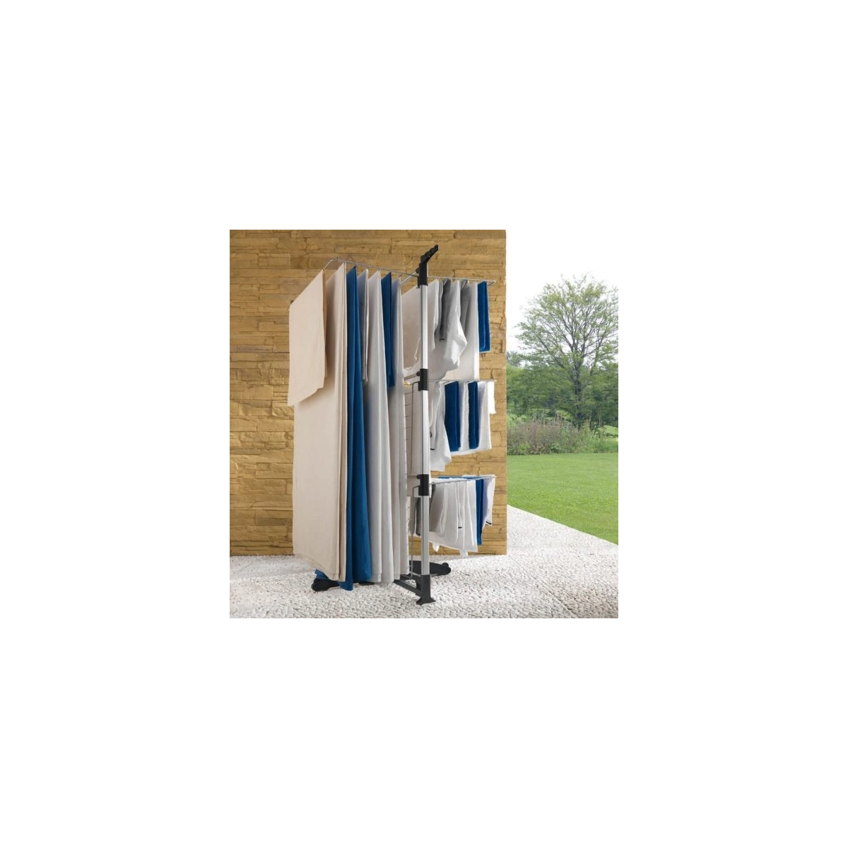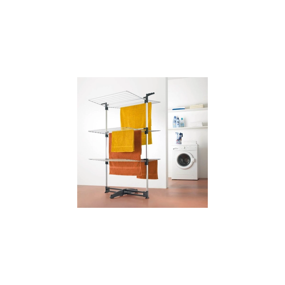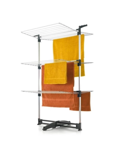 Tendedero torre de 3 alturas con sistema plegable, ideal para espacios reducidos. Capacidad de tendido de 40 metros y estructura resistente al óxido.