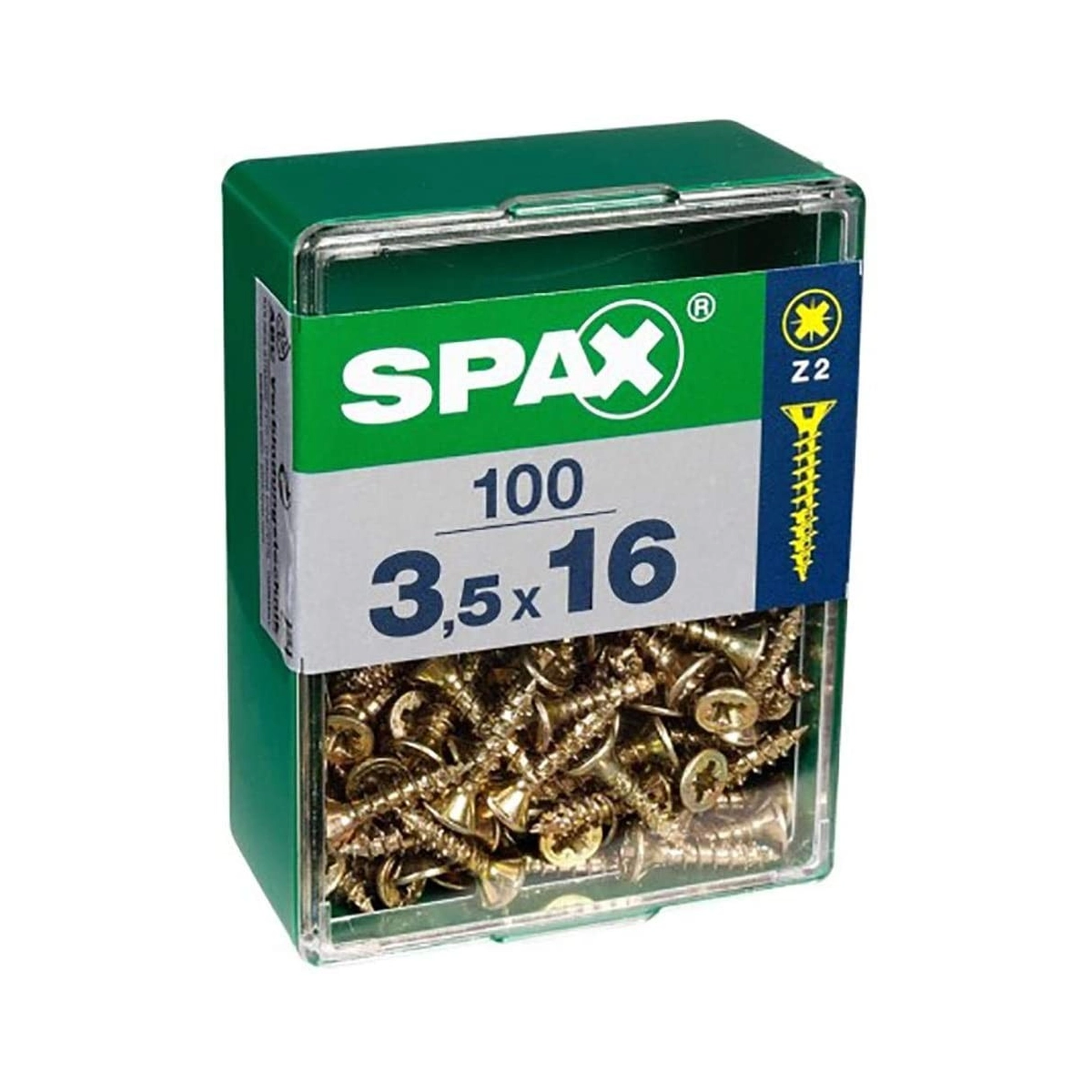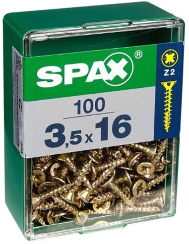 CAJA DE 100 TORNILLOS UNIVERSALES CON ROSCA COMPLETA, CABEZA PLANA Y RANURA EN CRUZ, Z1, PUNTA S, YELLOX