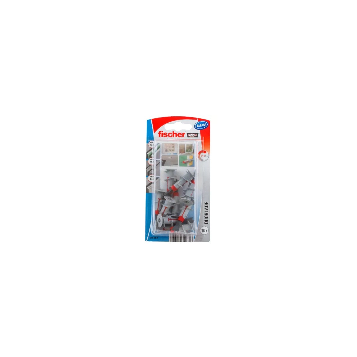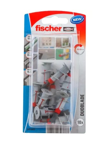 El blister de tacos Duoblade de Fischer es la elección ideal para realizar fijaciones seguras y rápidas en placas de yeso. Gracias a su diseño innovador y a su punta metálica afilada, estos tacos se instalan con facilidad y ofrecen una excelente capacidad de carga.