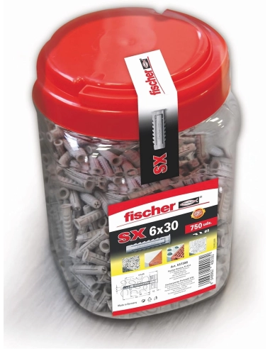 Fischer - Cubo Tacos Pared Para Hormigón SX Plus 6x30 - 750 Unidades