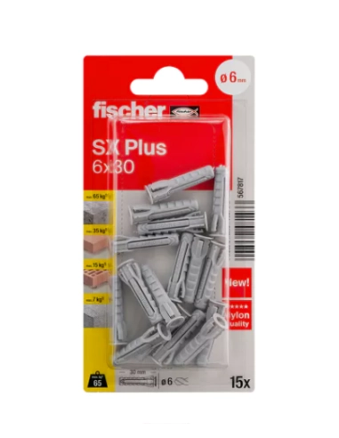 El blister de tacos SX Plus 6x30 de Fischer es la solución ideal para tus proyectos de fijación. Diseñado para ofrecer un agarre firme y duradero en una amplia variedad de materiales, este kit te permite realizar trabajos de manera rápida y eficiente.