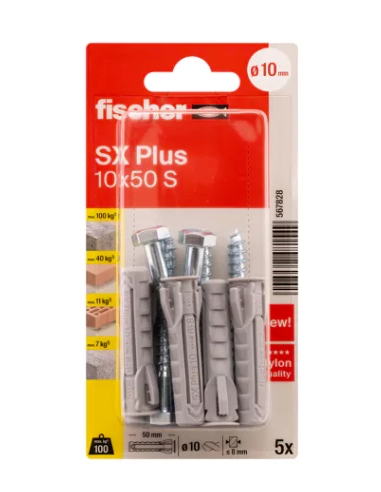 Fischer - Blister De Tacos y Tornillos SX Plus S 10 x 50 - 5 UD