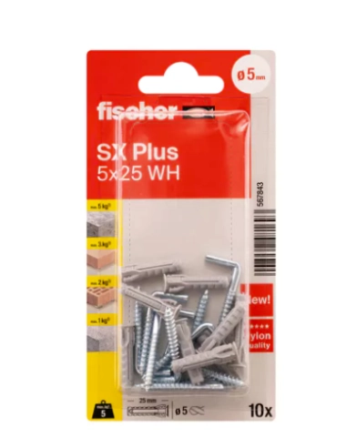 Fischer - Blister De Tacos Sx Plus 5 x 25 Con Alcayata - 10 UD