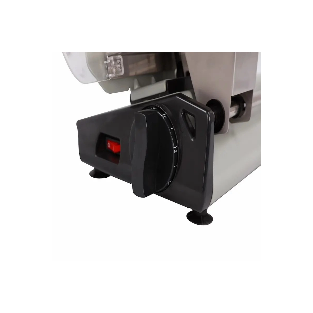 El cortafiambres eléctrico GARHE de 180W es la herramienta ideal para cortar embutidos, quesos, pan y otros alimentos con máxima precisión. Su cuchilla de acero inoxidable garantiza cortes limpios y uniformes, ideal para uso doméstico y profesional.