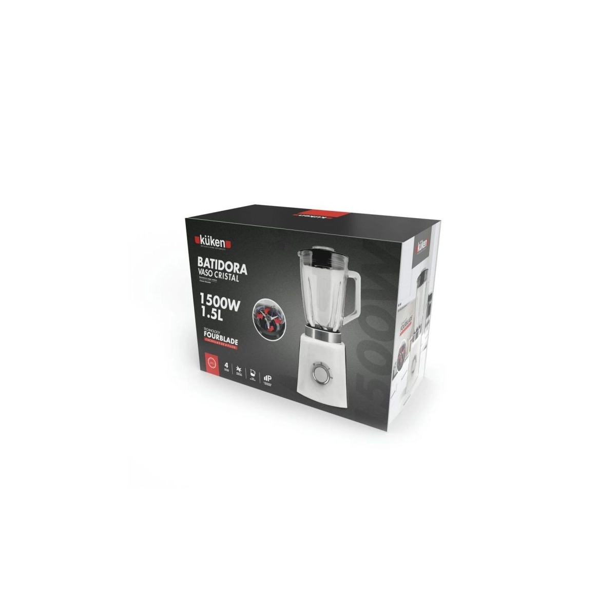 Batidora ALFA DYSER de 1500W con vaso de cristal de 1,5L. Potencia profesional para triturar, batir y mezclar con precisión.