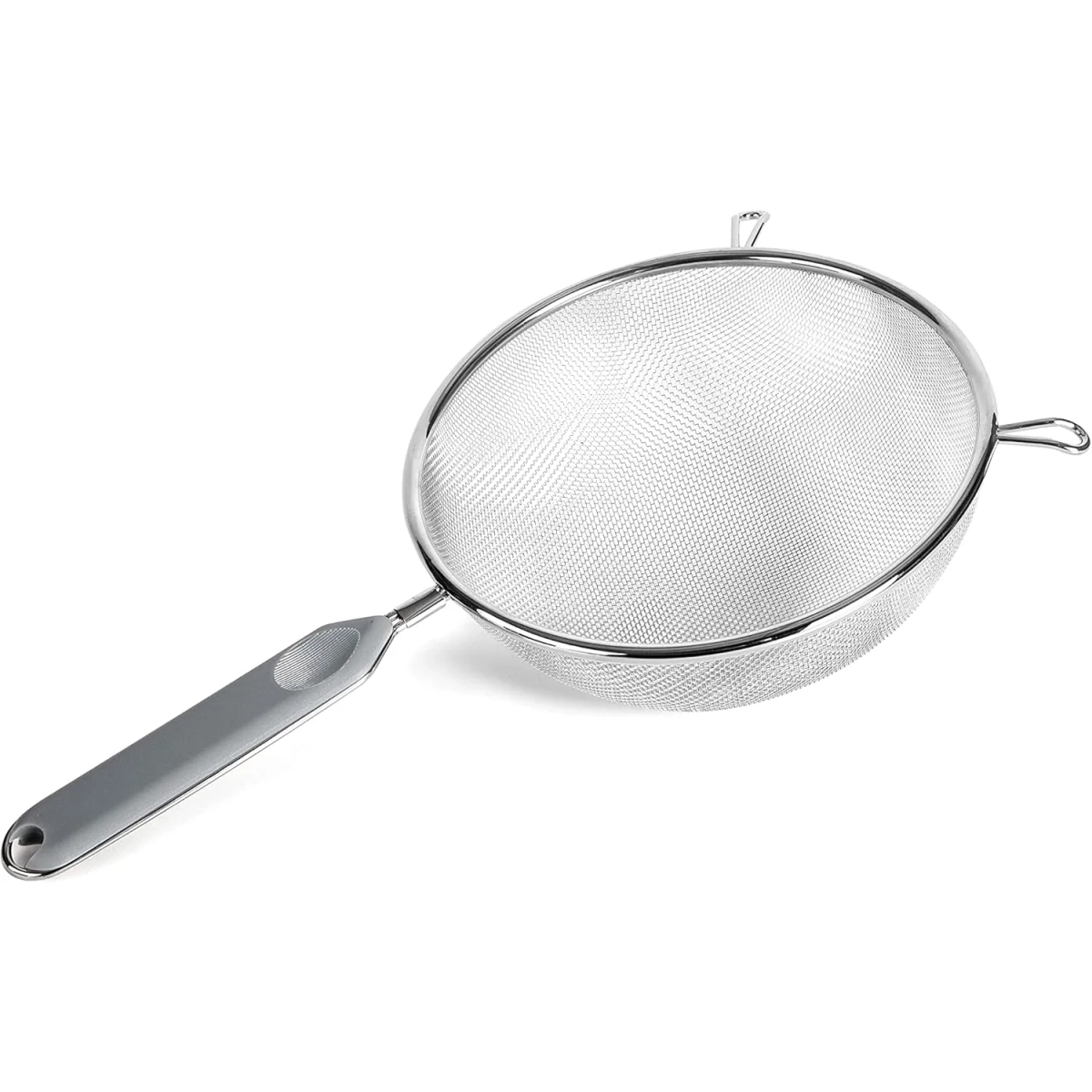 Colador de acero inoxidable de 25 cm, resistente, práctico y duradero.