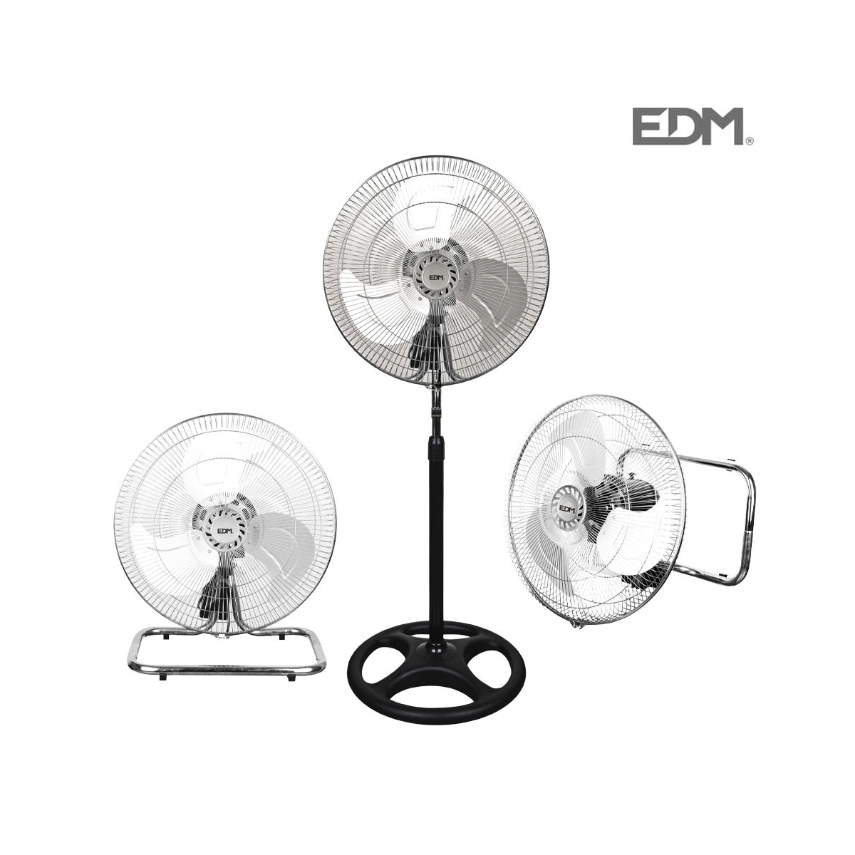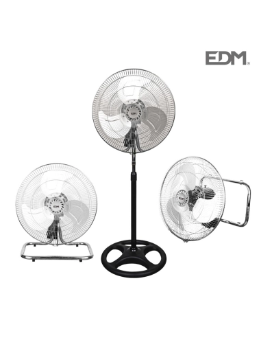 EDM - VENTILADOR INDUSTRIAL 3 EN 1 (PIE, SUELO Y PARED) CROMADO 80W ALTURA REGULABLE 165-185 CM - 33937