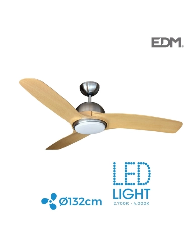 EDM - VENTILADOR DE TECHO DE LED MODELO LAPTEV IMITACION MADERA/NIQUEL - 28 W