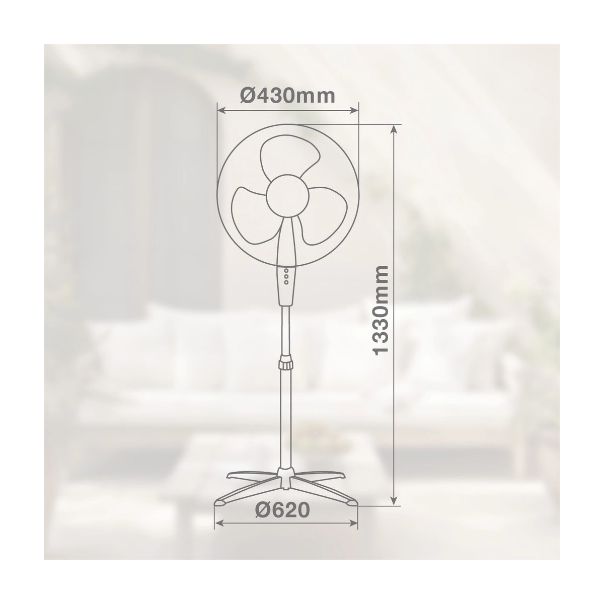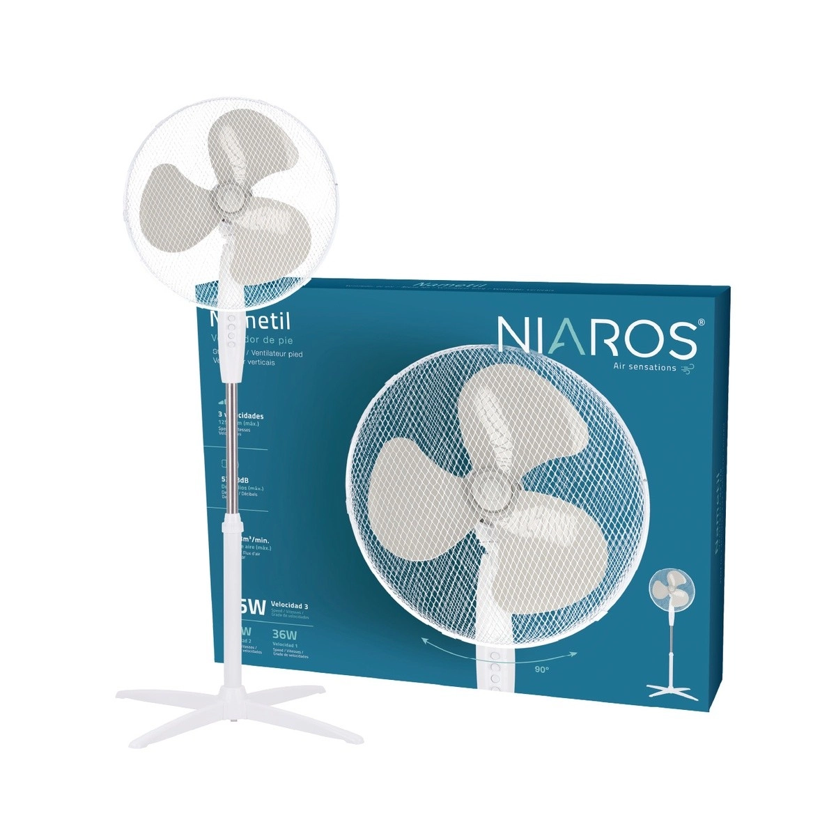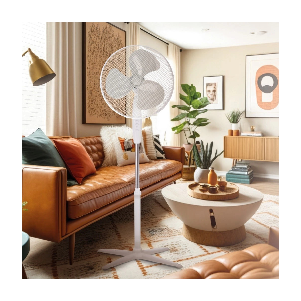 Ventilador de pie GSC Nametil de 43 cm y 45W. Altura regulable, tres velocidades y diseño blanco elegante para refrescar cualquier estancia.