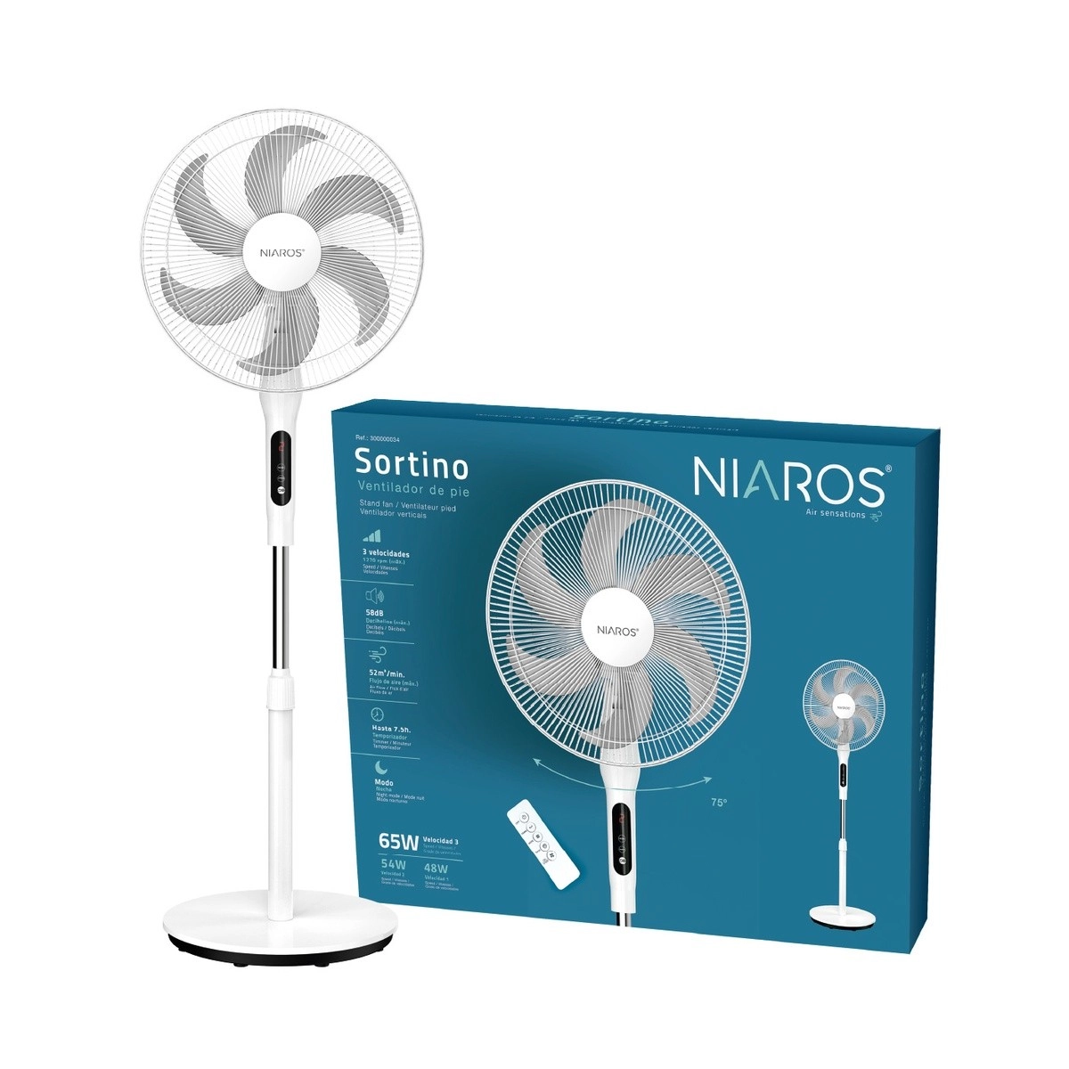 GSC - Ventilador De Pie Sortino Con Mando Y Temporizador 43CM 65W Blanco - 300000034