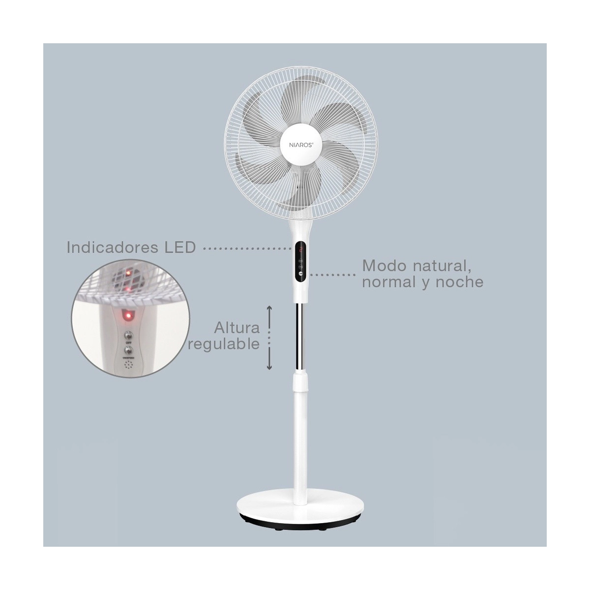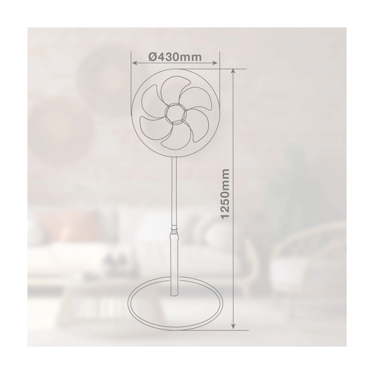Ventilador GSC Sortino de pie con mando a distancia y temporizador. 43 cm de diámetro, 65W de potencia y diseño moderno para refrescar cualquier estancia.