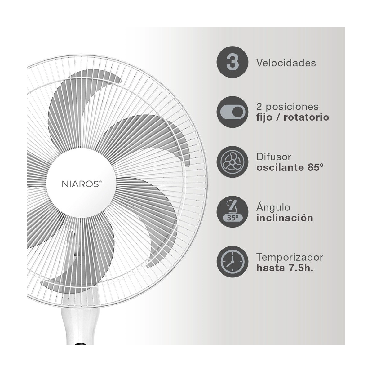 El ventilador de pie GSC Sortino combina potencia, comodidad y diseño. Con 65W de potencia y un diámetro de 43 cm, ofrece un flujo de aire fuerte y eficiente. Incorpora mando a distancia y temporizador para mayor comodidad, junto con altura regulable, función oscilante y múltiples velocidades. Su acabado en blanco se adapta a cualquier estilo de interior, siendo ideal para refrescar cualquier estancia del hogar u oficina con facilidad y elegancia.