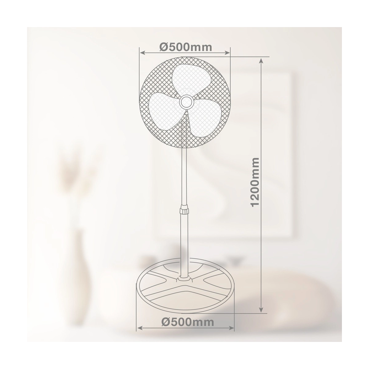 Ventilador de pie GSC Sandi metálico de 50 cm y 70W. Potencia, durabilidad y diseño industrial para una ventilación eficiente.