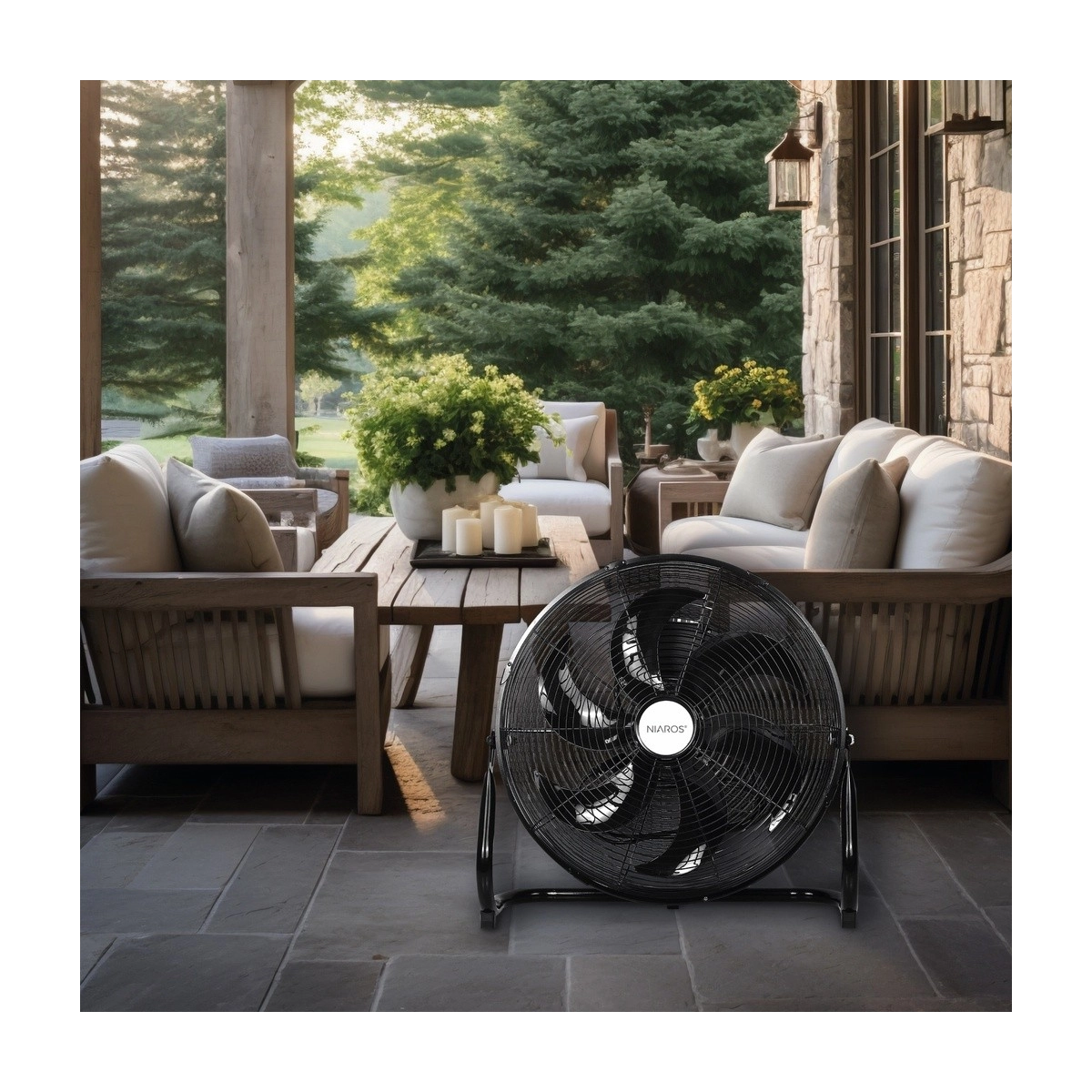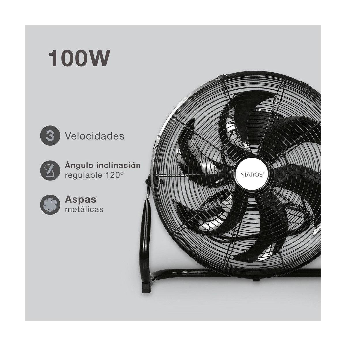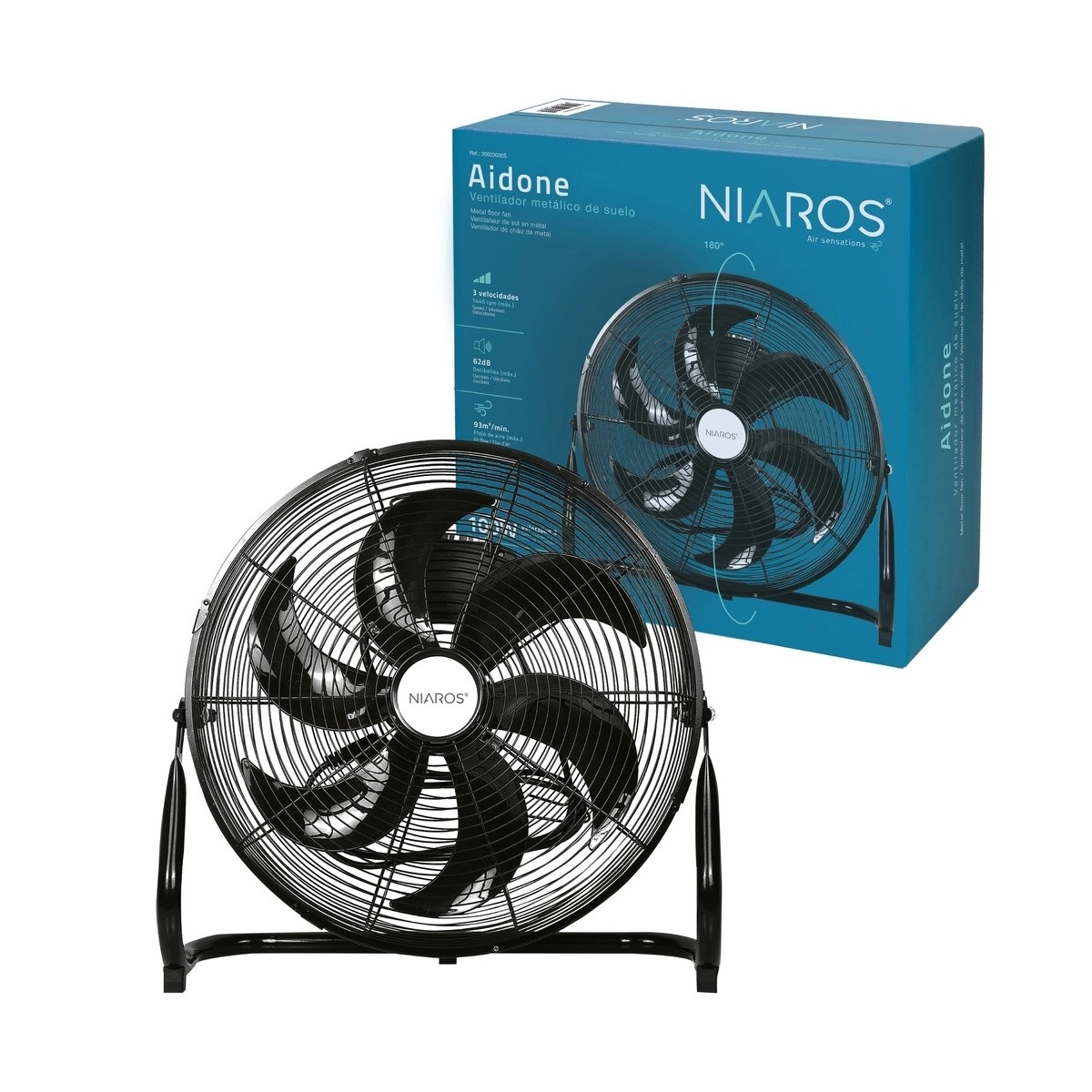 El ventilador de suelo GSC Aidone destaca por su gran potencia de 90W y un diseño robusto con acabado negro. Con un diámetro de 51 cm y estructura metálica resistente, proporciona un potente flujo de aire ideal para talleres, oficinas, almacenes o el hogar. Incorpora varias velocidades y ángulo de inclinación ajustable para dirigir el aire donde se necesite. Su diseño industrial y silencioso lo convierte en una solución eficiente y duradera para combatir el calor.